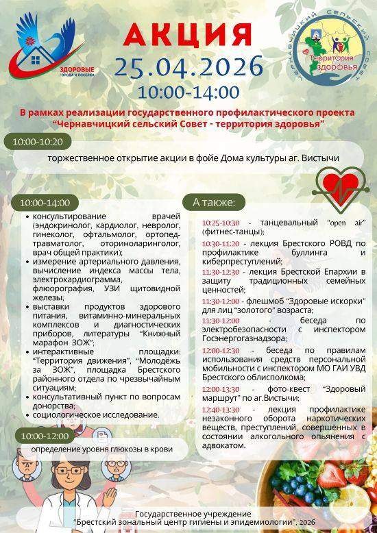 08.04.2026 в рамках реализации государственного профилактического проекта «Брест – здоровый город» и акции «Право на здоровье», проводимой в рамках Всемирного дня здоровья, социологом Брестского зонального ЦГиЭ в ГУО «Средняя школа №15 г.Бреста» проведена лекция «Ваше здоровье – ваш выбор. Профилактика химических аддикций» по профилактике употребления наркотических веществ, алкоголя, табачных изделий. Всего в мероприятии приняли участие 98 учащихся 8-х классов.
