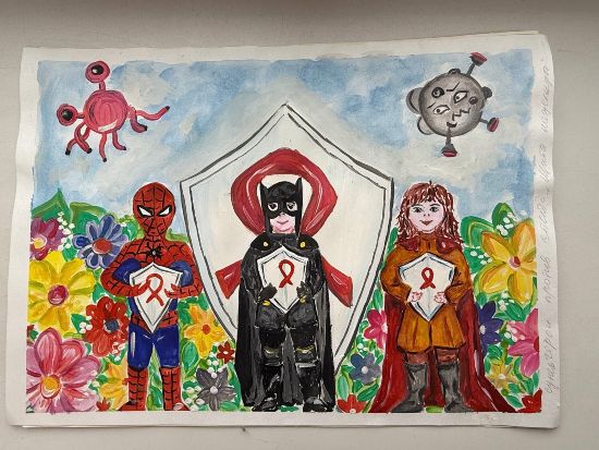 ГУО «Базовая школа д.Приборово», рисунок «Щиты надежды: супергерои против СПИДа», Степанюк У.А.