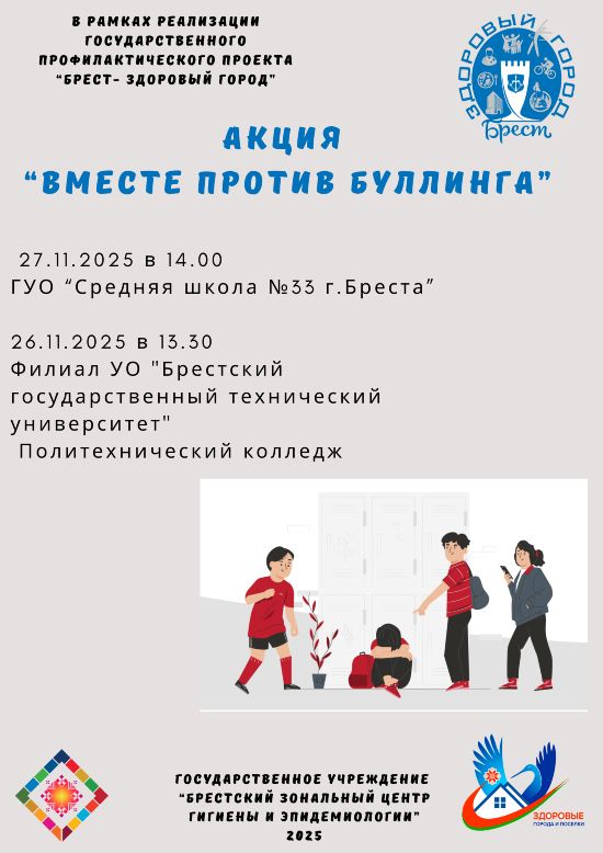 21.11.2025 в рамках реализации государственного профилактического проекта «Брест – здоровый город» и республиканской информационной акции «Беларусь против никотина» для студентов учреждения образования «Брестский государственный технический университет» проведены мероприятия по профилактике табака.